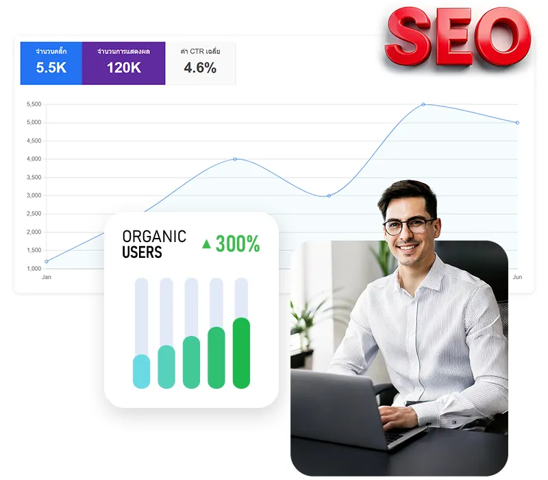 เราวางโครงสร้างเว็บไซต์ให้รองรับการทำ SEO ตั้งแต่พื้นฐาน เช่น การใช้คีย์เวิร์ดที่เหมาะสม โครงสร้าง URL ที่ดี และความเร็วในการโหลดเว็บไซต์ เพื่อให้ติดอันดับบน Google อย่างมีประสิทธิภาพ เราพัฒนาเว็บไซต์ให้มีระบบจัดการเนื้อหาที่ใช้งานง่าย ช่วยให้เจ้าของธุรกิจสามารถอัปเดตข้อมูลข่าวสาร โปรโมชั่น หรือรายละเอียดสินค้าได้ด้วยตนเอง เรามุ่งมั่นสร้างเว็บไซต์ที่ไม่เพียงแต่สวยงาม แต่ยังสามารถเพิ่มโอกาสทางธุรกิจให้แก่ลูกค้า โดยคำนึงถึงความสะดวกสบายในการใช้งาน และการดึงดูดกลุ่มเป้าหมาย